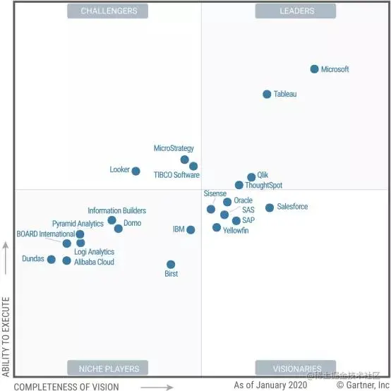 图2 Gartner2020年分析与BI平台魔力象限