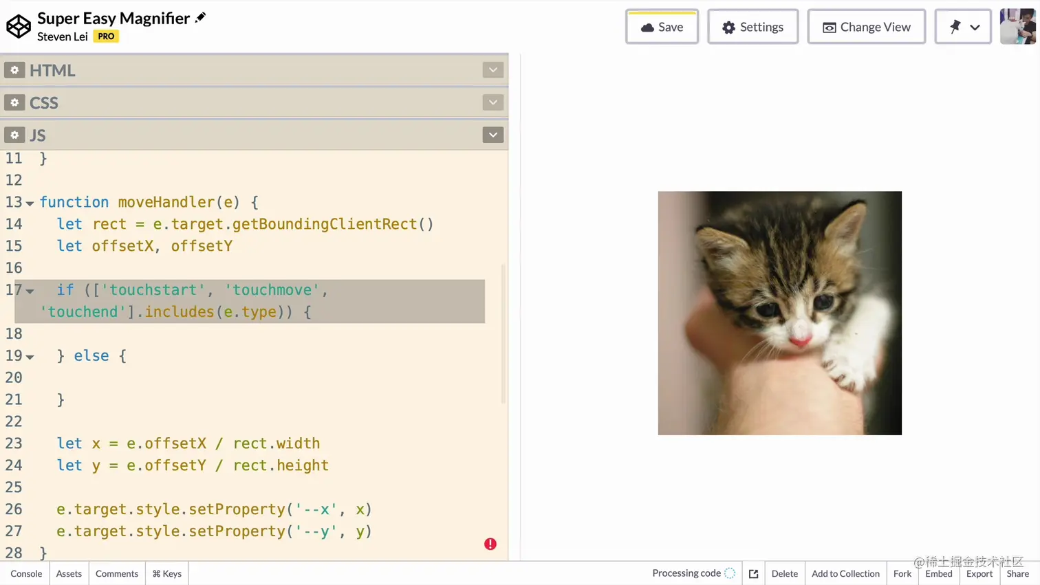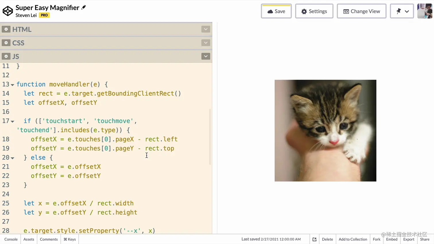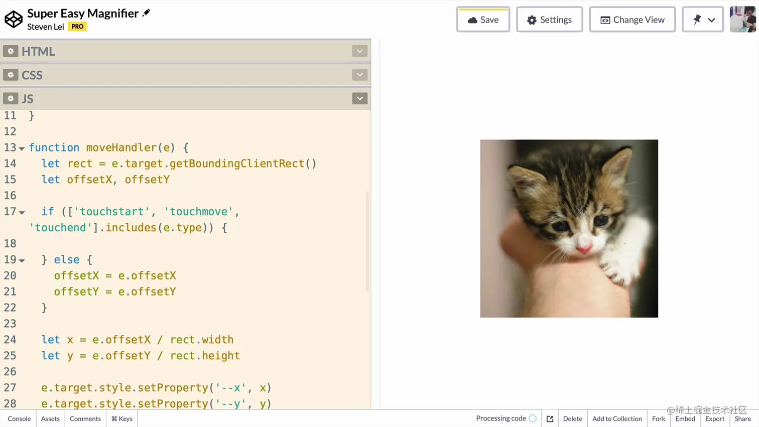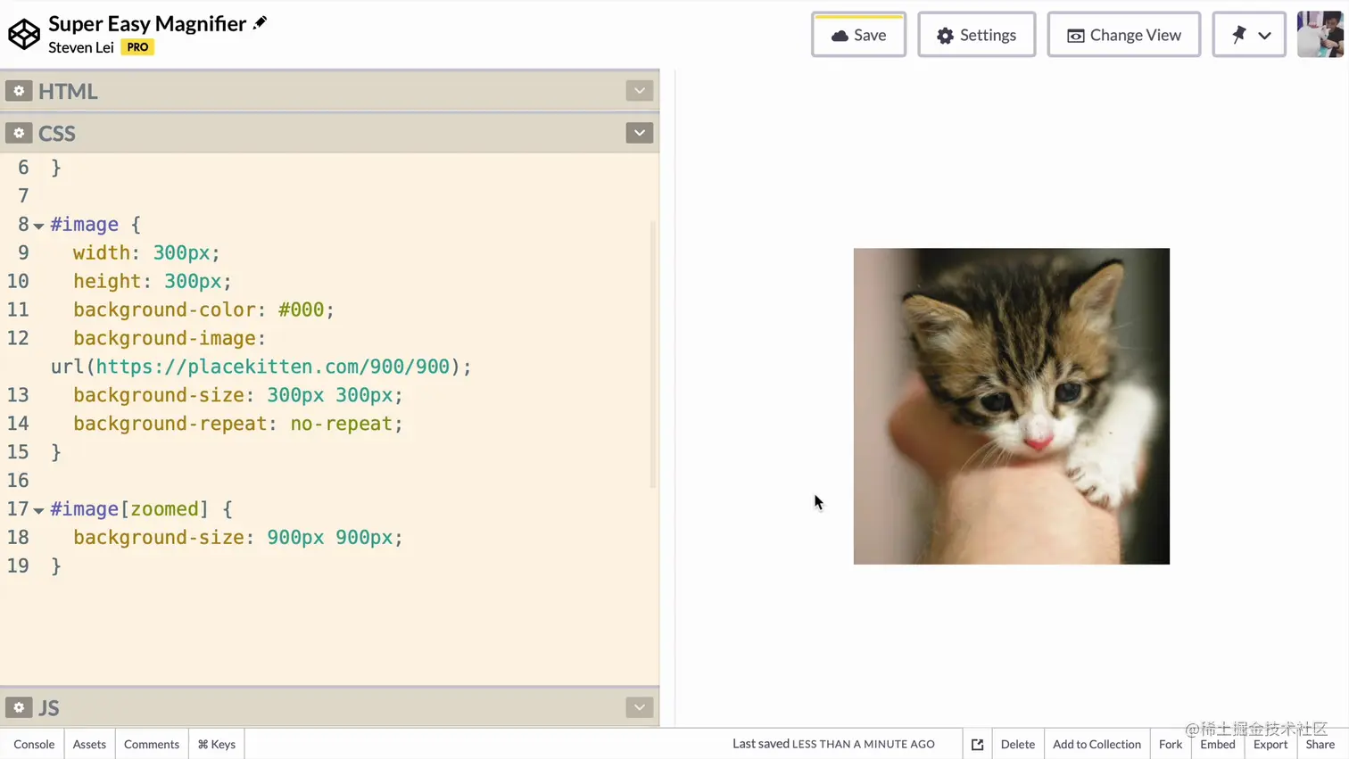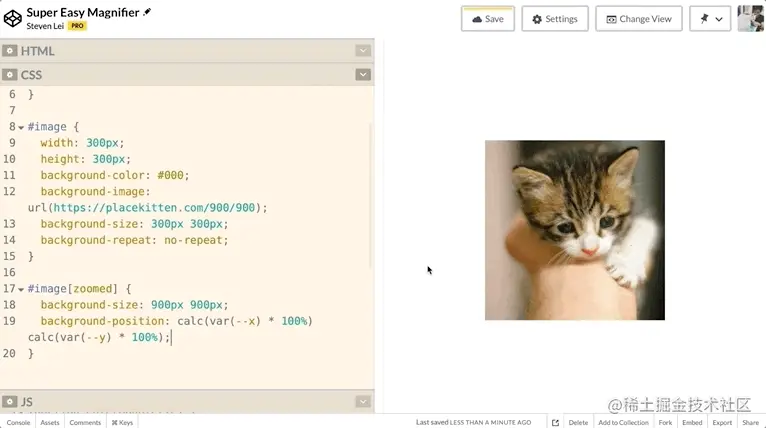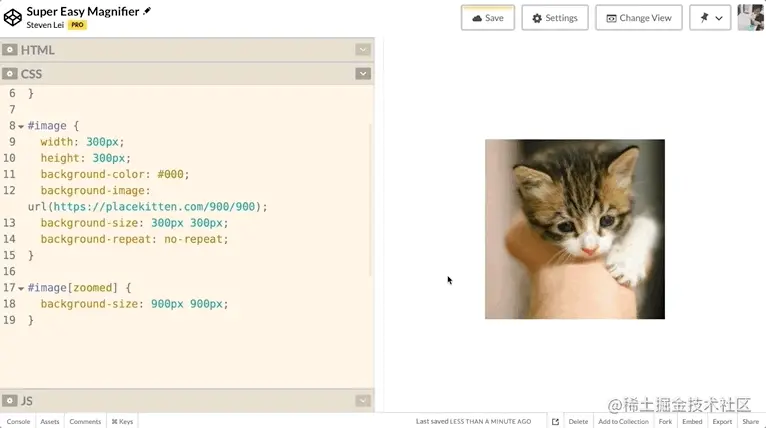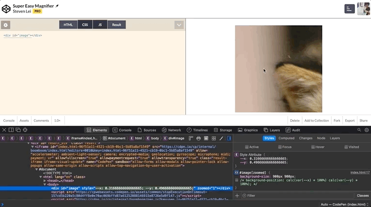 有了这两个数据,再加多一行 CSS,就可以完成放大镜的效果。你猜到我会怎样做吗?如果有兴趣的话,不妨自己试一试,然后再回来继续看。