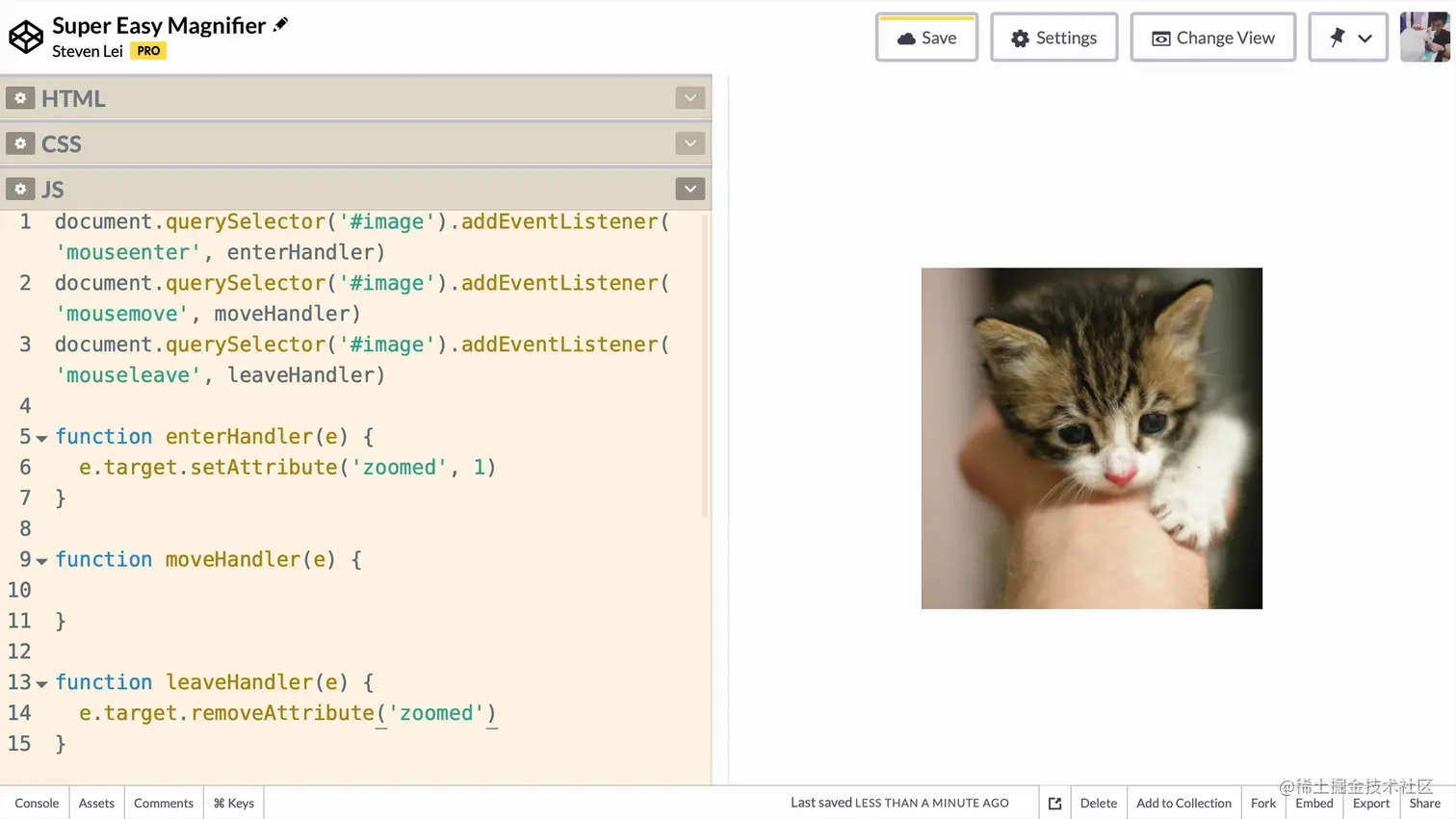 这个案例的源代码在 codepen.io/stevenlei/p…