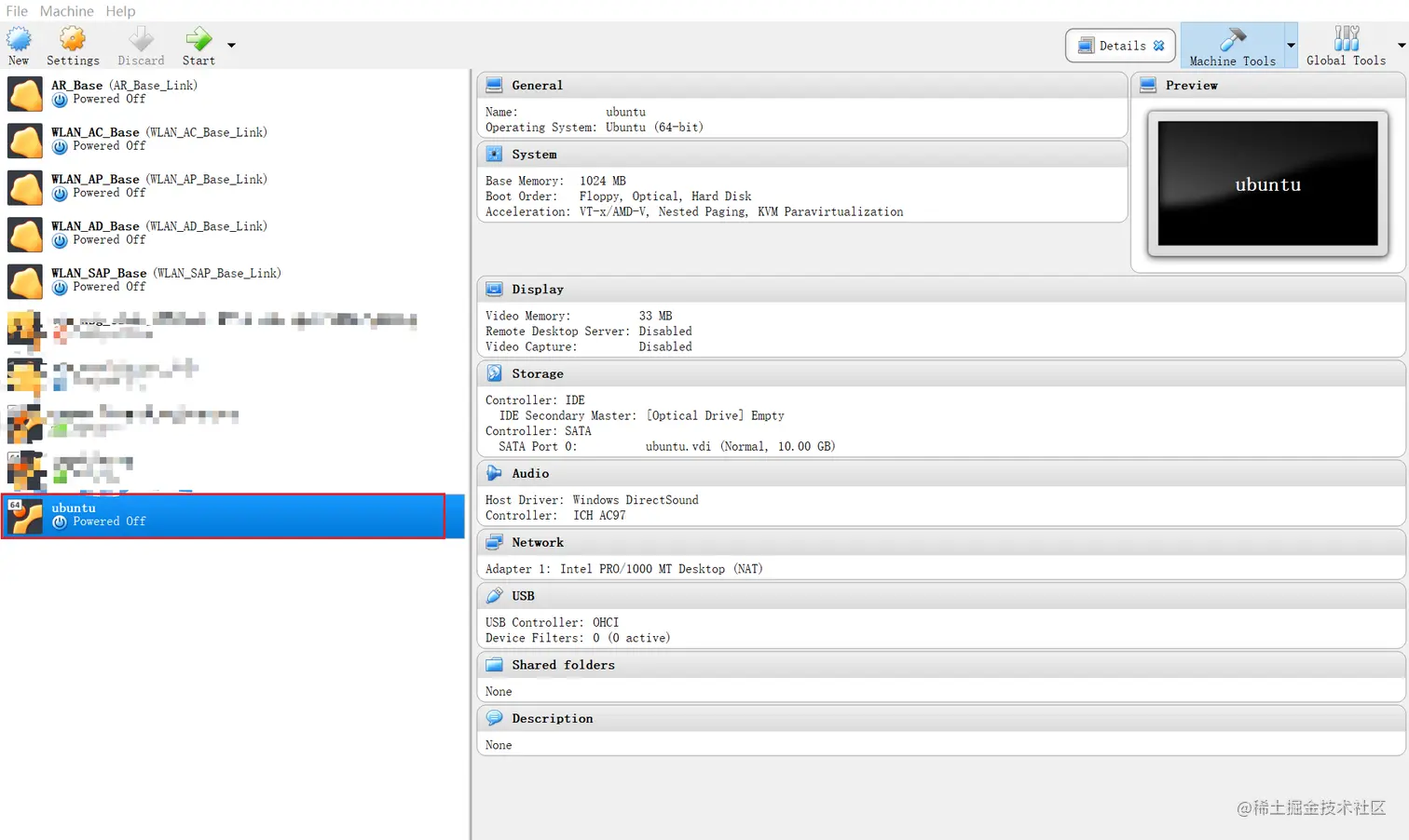 - 这时选中你刚创建的ubuntu主机,然后单击上方菜单的”Start“运行