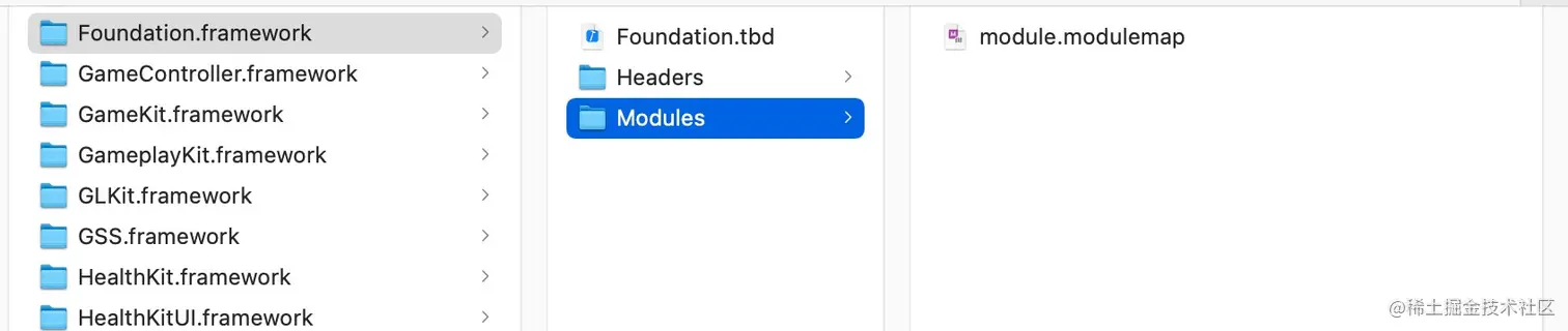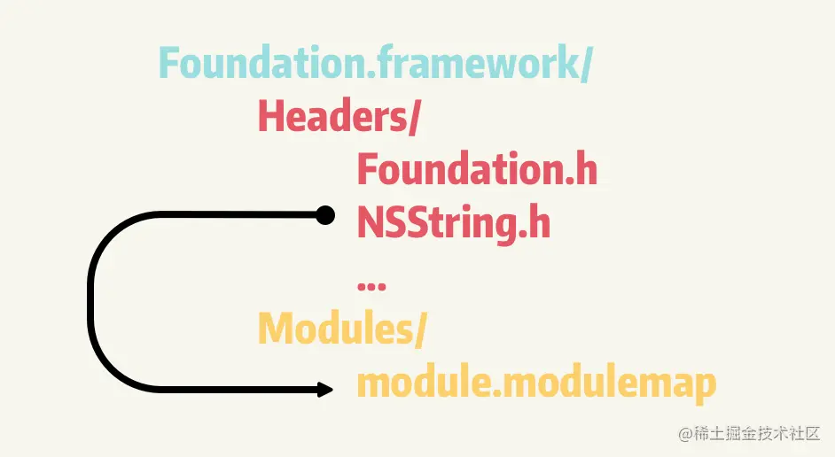 而对于 Framework 这种标准的文件夹结构,modulemap 文件的相对路径是固定的,它就在 Modules 目录中,所以 Xcode 基于这种标准结构,直接内置了相关的逻辑,而不需要将这些配置再暴露出来。