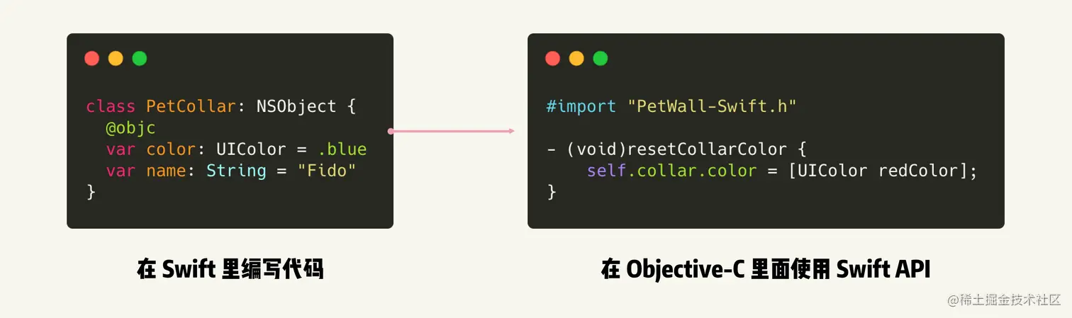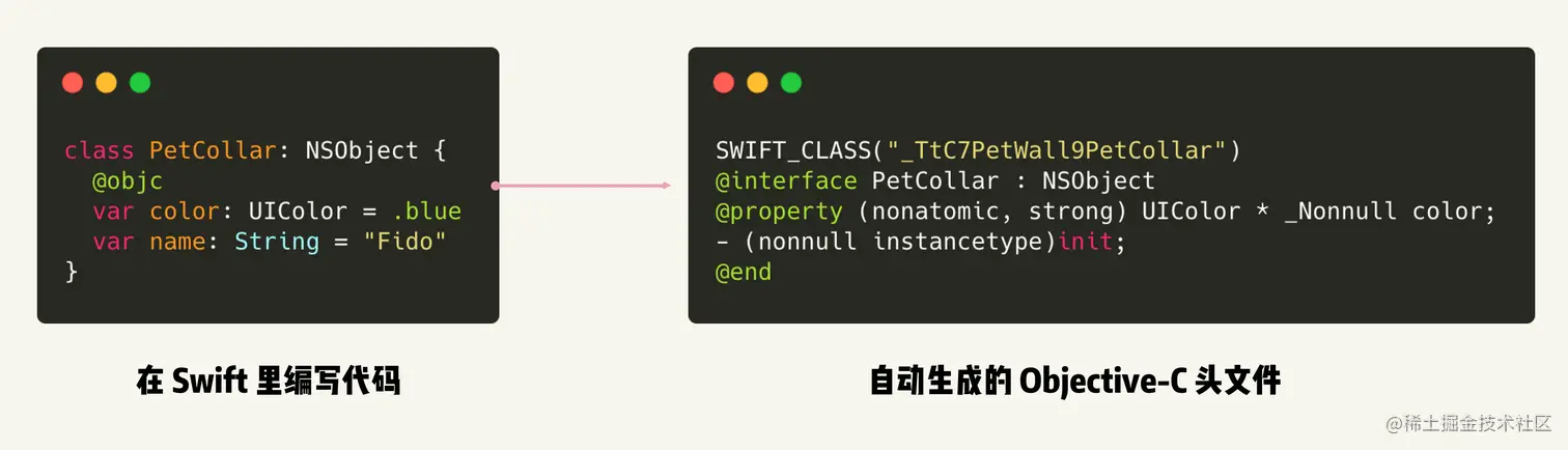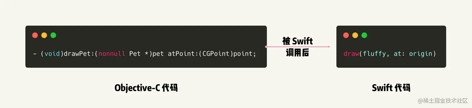 - 如果你想了解 Swift 和 Objective-C 是如何找寻方法声明的,可以从 【Swift 来了】的章节阅读,这会让你从原理上理解混编的核心思路和解决方案。