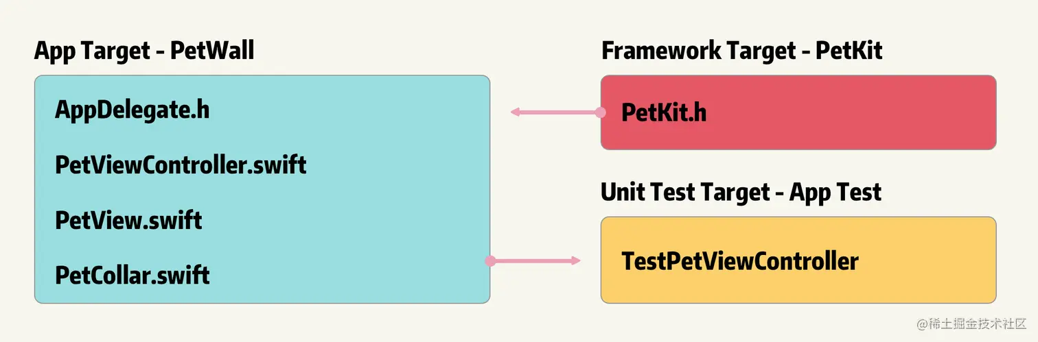 当 Swift 和 Objective-C 文件同时在一个 App 或者 Unit Test 类型的 Target 中,不同类型文件的 API 寻找机制如下: