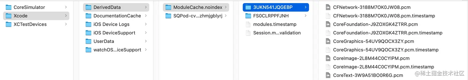 在实际编译之时,编译器会创建一个全新的空间,用它来存放已经编译过的 Module 产物。如果在编译的文件中引用到某个 Module 的话,系统将优先在这个列表内查找是否存在对应的中间产物,如果能找到,则说明该文件已经被编译过,则直接使用该中间产物,如果没找到,则把引用到的头文件进行编译,并将产物添加到相应的空间中以备重复使用。