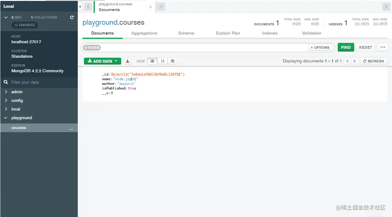 Course.findOne({name: 'node.js基础'}).then(result => console.log(result))