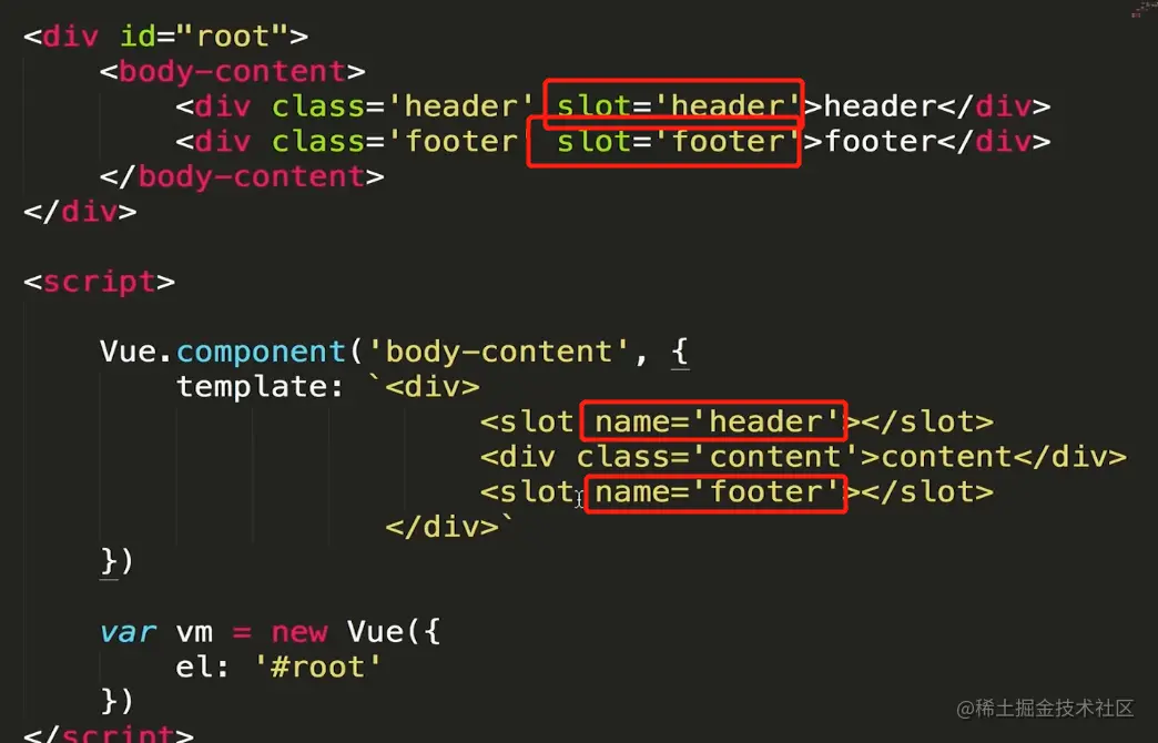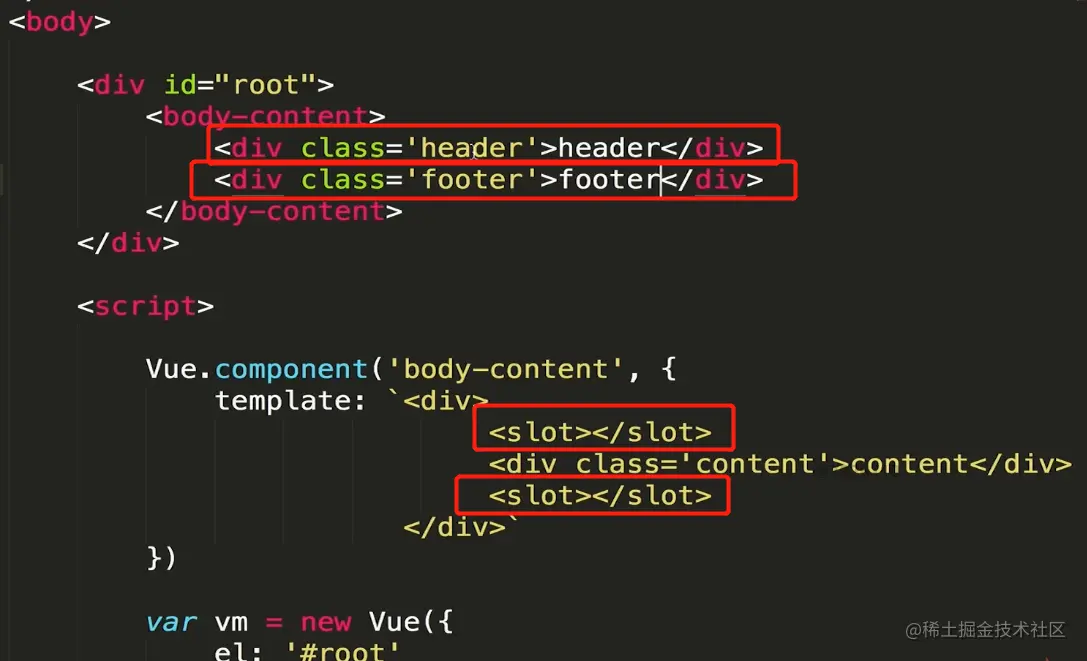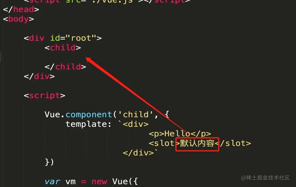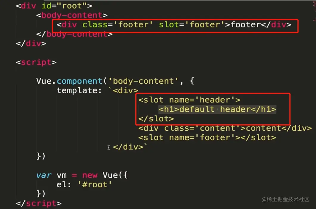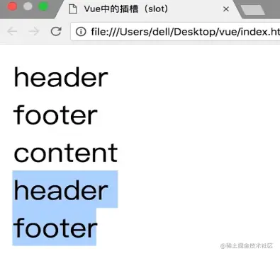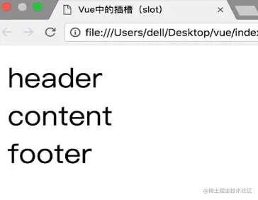 在Vue中使用插槽(默认内容,具名插槽) 冰露农夫 2021-03-01 477 阅读1分钟 这就是插槽 父组件不向插槽里传内容的时候,可以在模板里使用默认内容 现在有一个很常见的需求,我的内容都写在一个叫content的组件里,header和footer是由外部传递进来的,类似这样 但是就会这样显示 原因是传进插槽的所有内容都被认为是slot要显示的内容,用了2个slot所以就显示2次 这就引出了具名插槽 这样就可以了 具名插槽中也可以使用默认内容