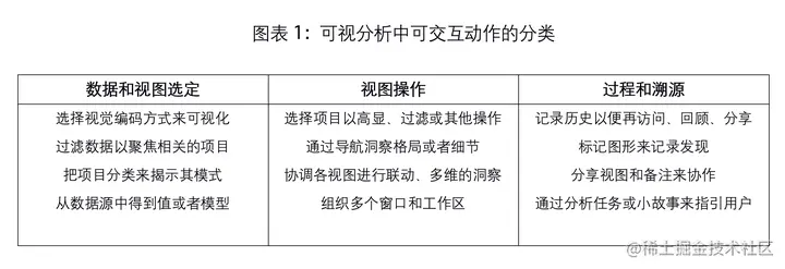 可视分析的⼯具。我们展示⼀种对成功的分析有所贡献的交互的分类。这个分类类别由3个⼤
