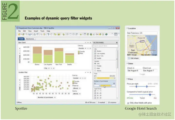 现对数据⼦集的快速可逆的探索。图2中的Spotfifire 给予了多种控件来筛选可视化的数据:单