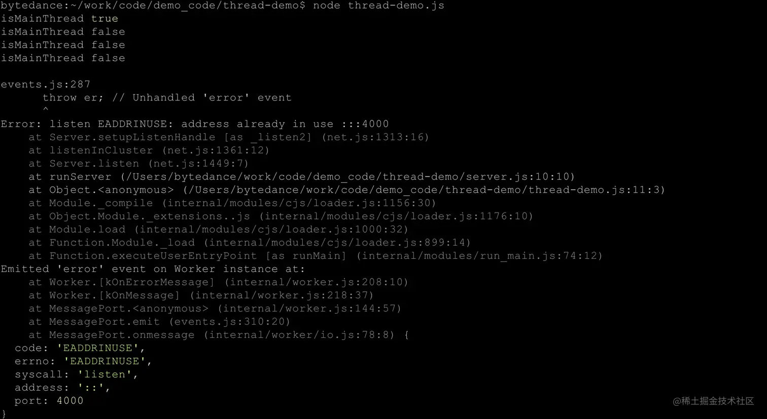 我们没办法在一个进程中监听多个端口,具体可以查看 Node.: 中 net.js 和 cluster.js 做了什么。