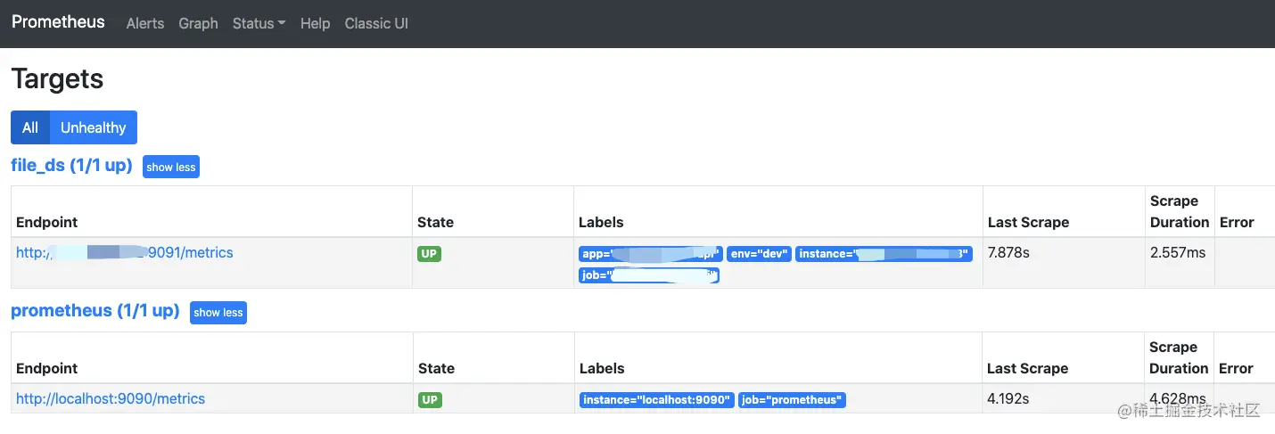 打开 localhost:9090 就可以看到:
