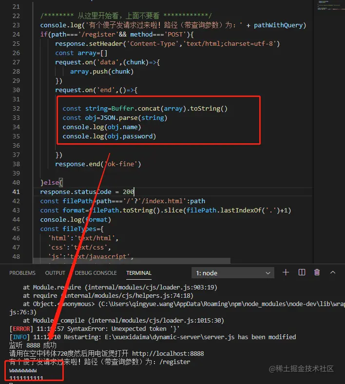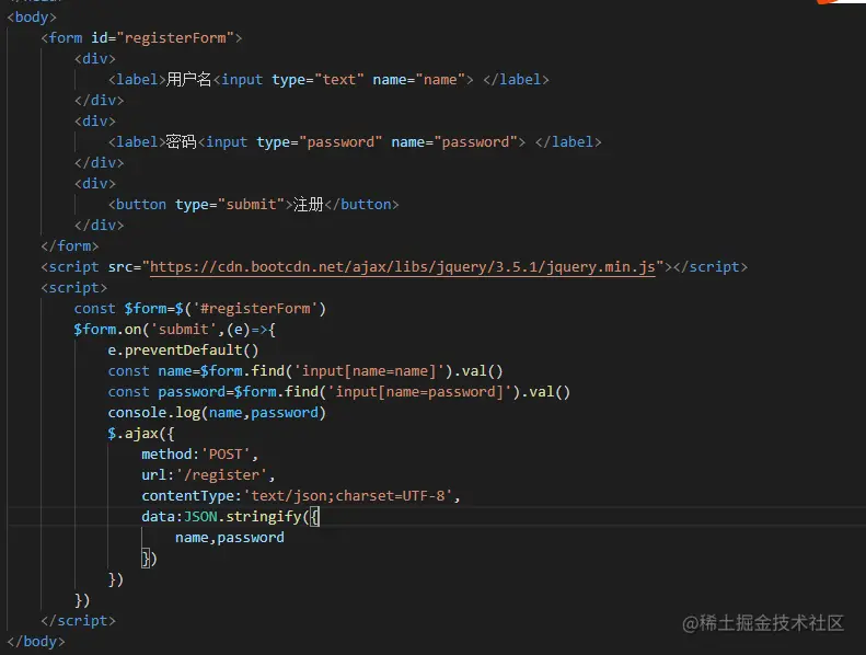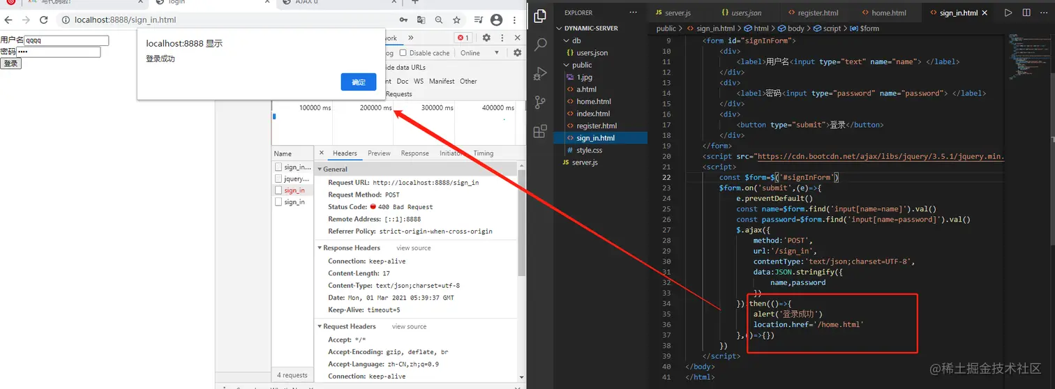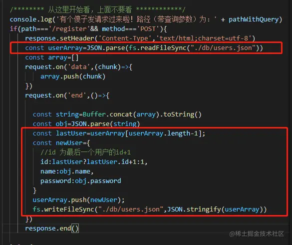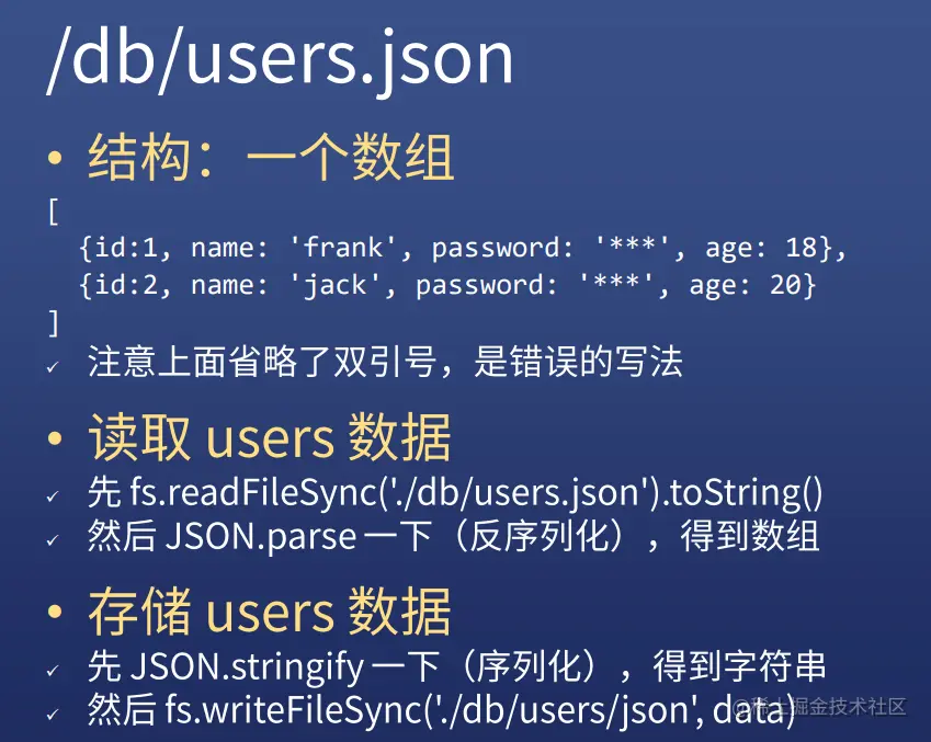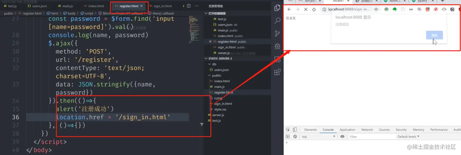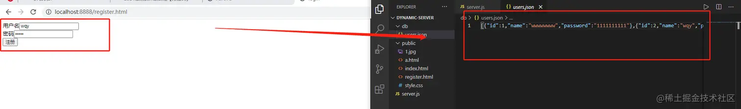 ——用户提交用户名和密码,数据库(users.json)就新增一行数据