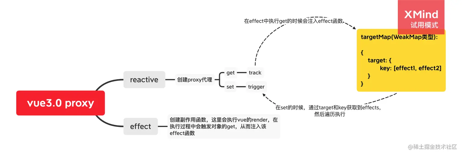 以下主要分析reactive、track、trigger、effect