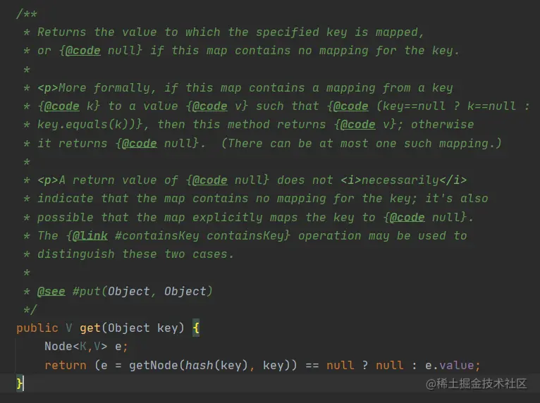 get()方法较为简单,通过key的hashcode寻址到数组下标,若数组元素中的key和hash符合条件就会返回。否则遍历红黑树或者链表寻找。找不到则返回null