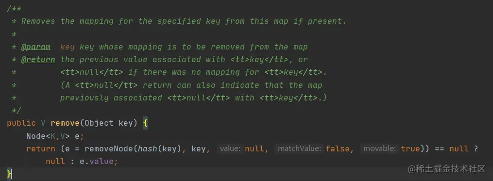 根据key和hash找到结点,并将其去除。如果是红黑树,结点数小于6时转化回链表