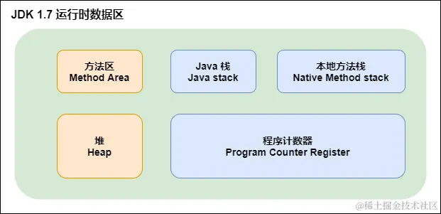 JVM 运行时内存共分为程序计数器,Java虚拟机栈,本地方法栈,堆,方法区五个部分: