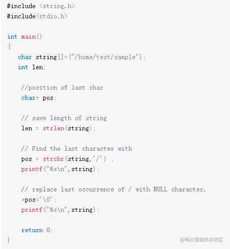 通过使用strrchr查找目录路径中最后一个“ /”的位置。