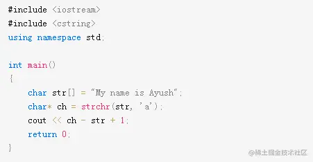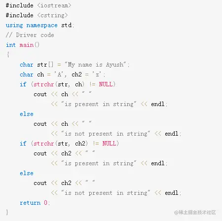 strchr()函数还可用于检查strinG中字符的存在。输入包含要检查的字符(如果它存在于字符串中)。
