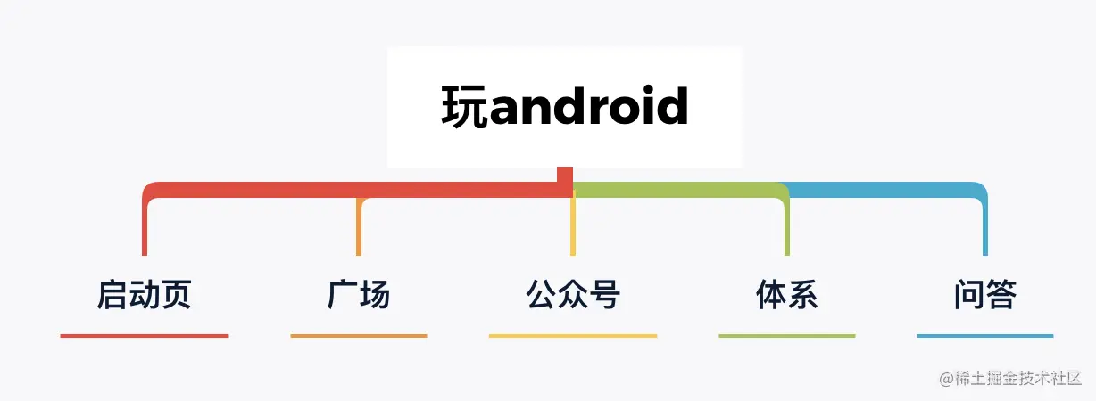 这个结构比较简单,这个结构是根据玩Android网站的目录导航从里边抽取了几个比较常用的。后续写到每个部分的时候会有一个针对每一部分的相对详细的结构图。