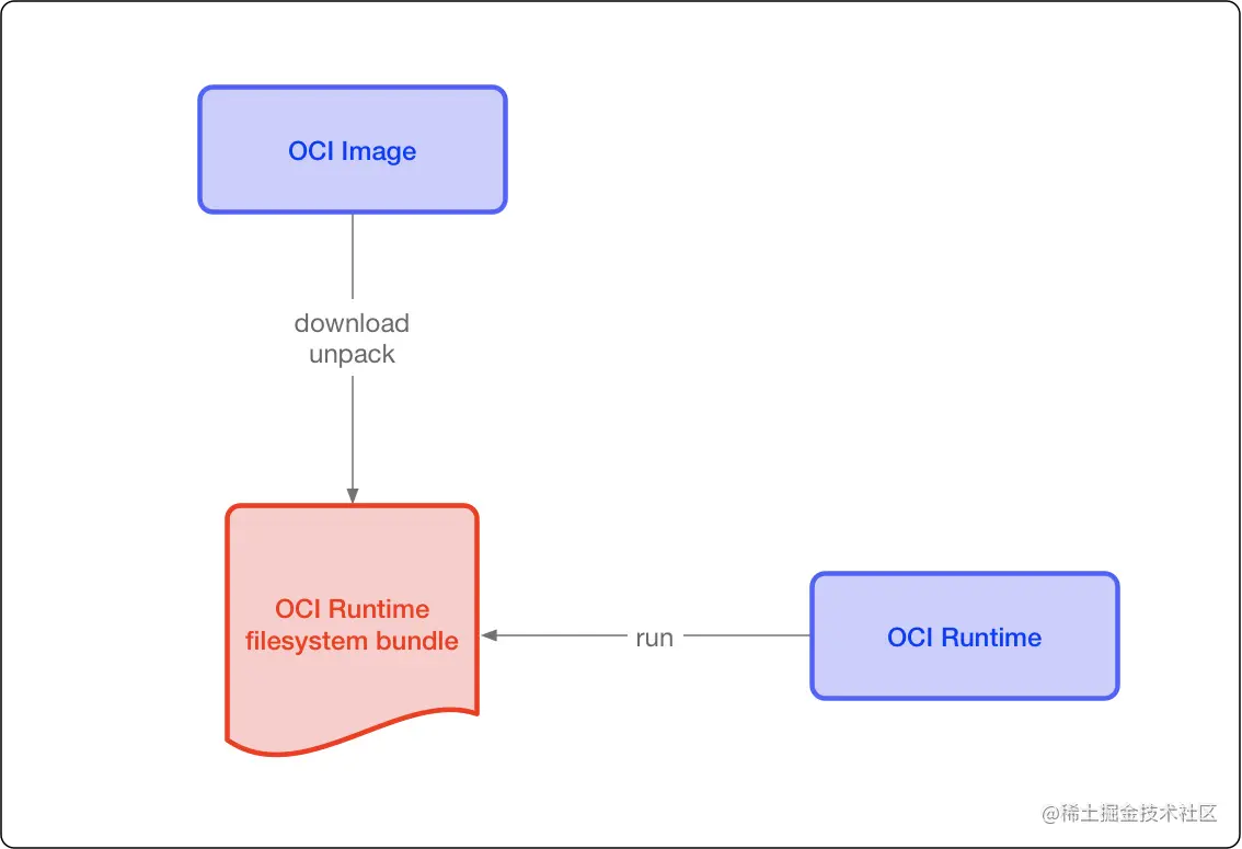 这两个协议通过 OCI runtime filesytem bundle 的标准格式连接在一起,OCI 镜像可以通过工具转换成 bundle,然后 OCI 容器引擎能够识别这个 bundle 来运行容器。