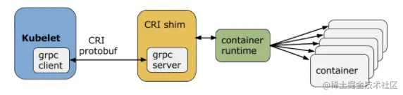 Container Runtime实现了CRI gRPC Server,包括RuntimeService和ImageService。该gRPC Server需要监听本地的Unix socket,而kubelet则作为gRPC Client运行