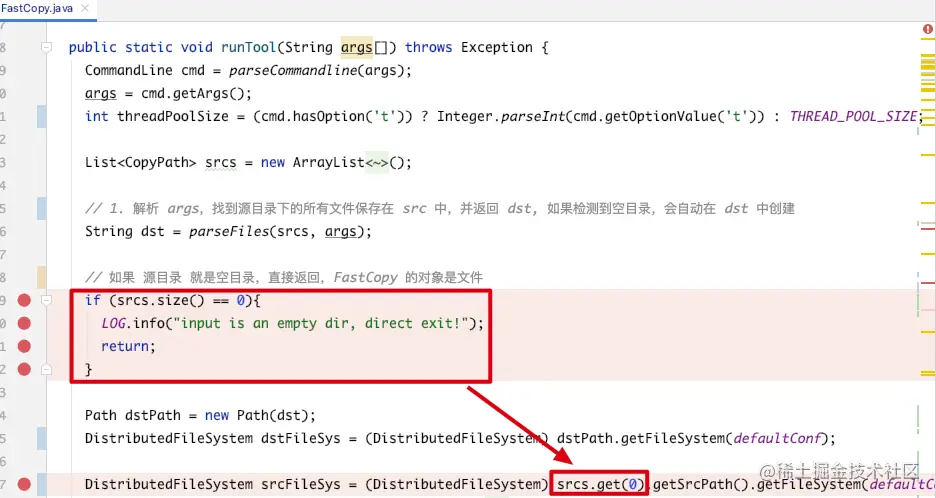 (1)解析 args,找到源目录下的所有文件保存在 List srcs 中,并返回 dst, 如果检测到空目录,会自动在 dst 中创建