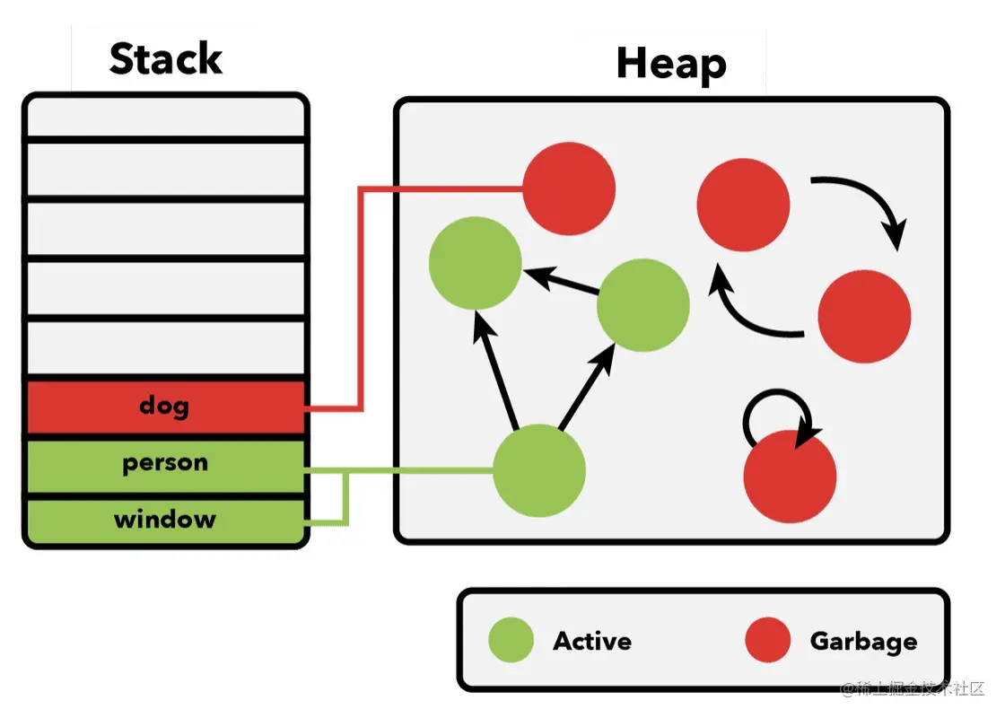 这个算法的问题在于它没有考虑到循环引用,当一个或者多个对象循环引用,但是不能通过代码访问它们时,就会发生这种情况