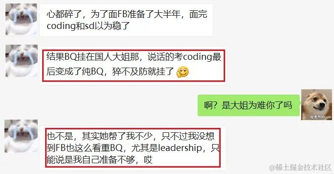 并非是大姐刁难,FB面试BQ skip coding是可行的,挂了其实是BQ准备不够,今年FB可以说是十分重视BQ,之前就有人碰到了加面2轮BQ的情况,考察的重点也是leadership👇