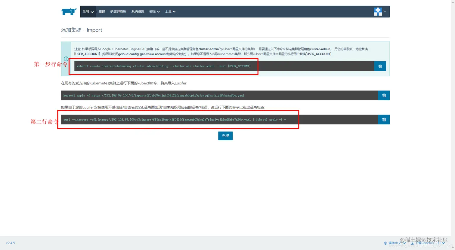 使用rancher管理minikube创建的集群教程 TopFE 2021-03-02 189 阅读1分钟 那么用kubectl配置文件中配置的执行用户替换[USER_ACCOUNT]。一般是minikube 默认安装的minikube 存放在这里的 齐活