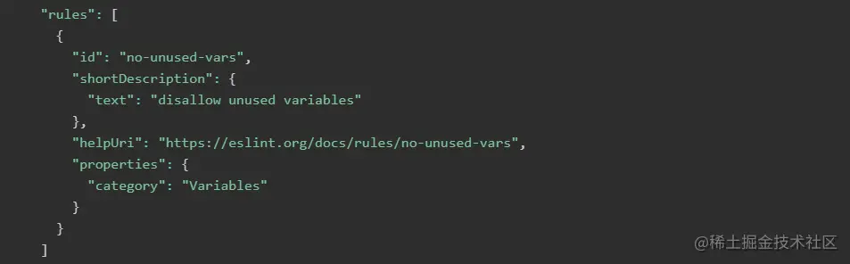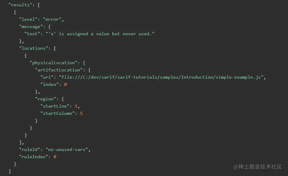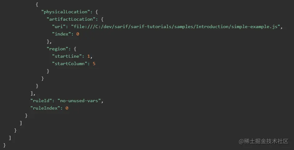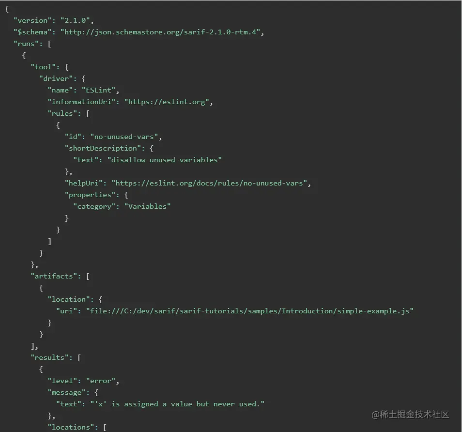 我们先来看一个ESLint扫描结果的一个SARIF的例子。