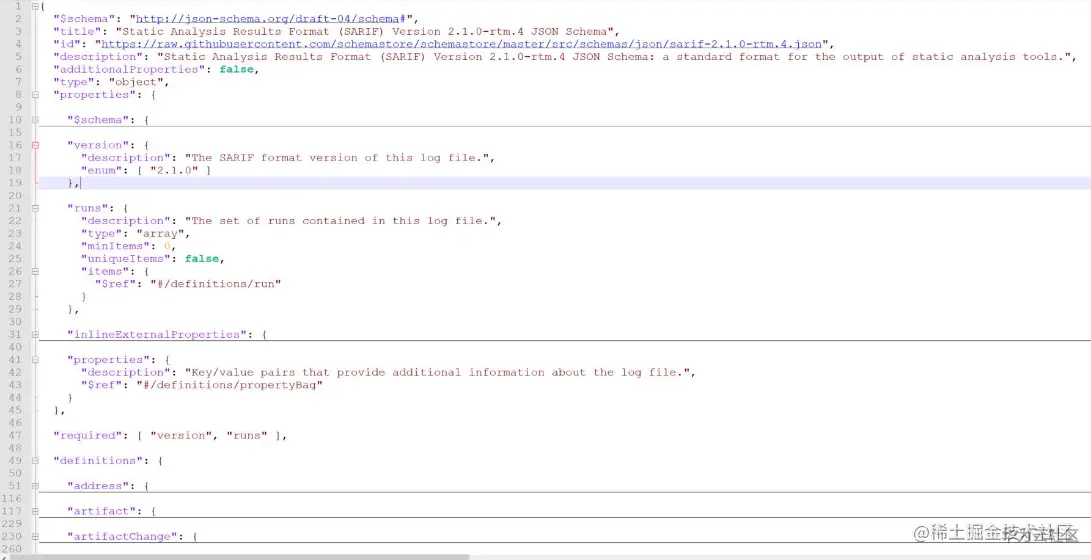 下图为SARIF的schema定义文件的视图: