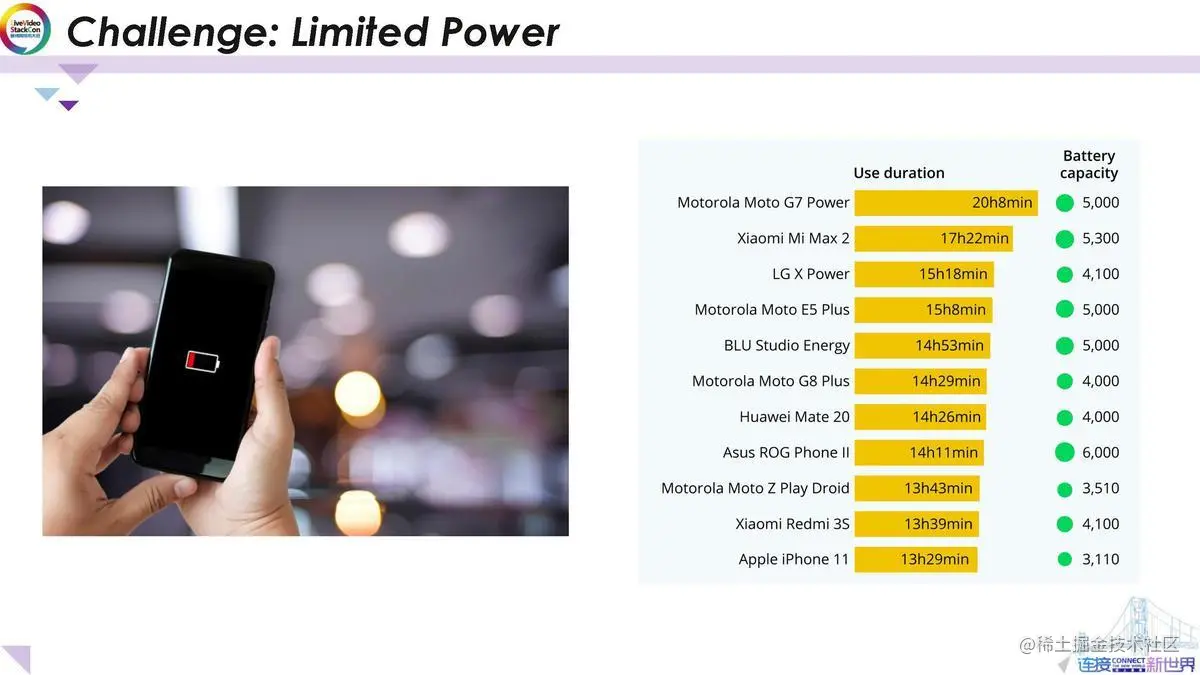 如今,用户对设备的使用比以往任何时候都多,每款新手机都在不断提升电池容量并且支持快速充电功能。但是,设备的有限功率仍然是长续航时间的主要挑战。