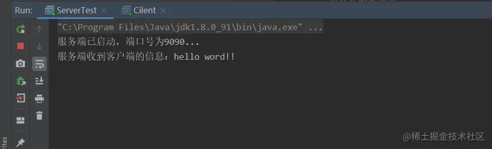 我们先启动服务端程序,再运行客户端,服务端收到客户端发送的信息,服务端打印结果如下: