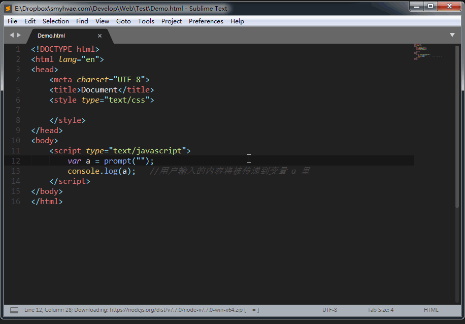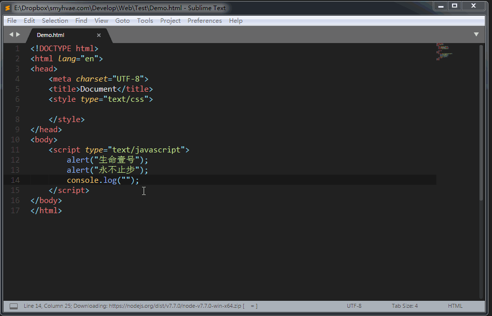 PS:在Sublime Text里,输入<sc后,按tab键,可以自动补齐。