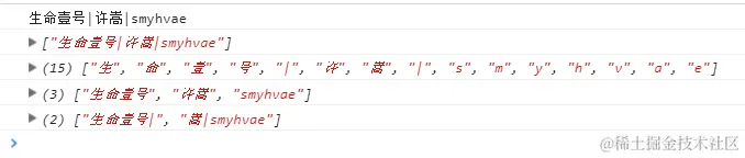 console.log(str3.split("|")); //参数为指定字符,表示:此字符将不会出现在数组的任意一个元素中