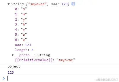 引用数据类型String是可以绑定属性和方法的。如下: