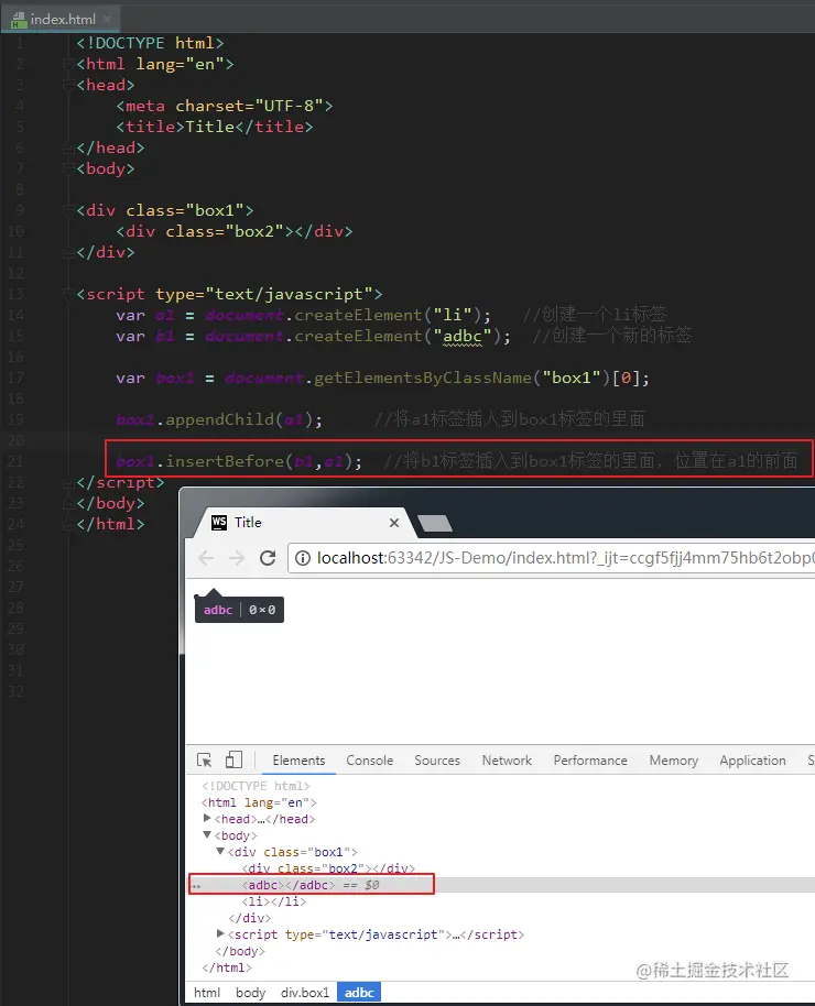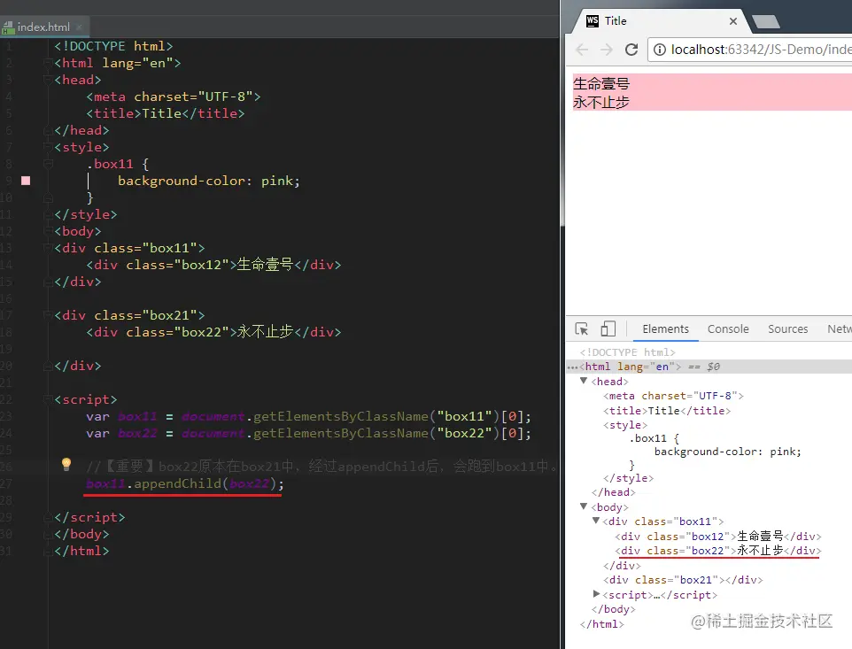 方式1和方式2的区别在于:前者是直接操作标签,后者是把标签作为DOM节点。推荐方式2。