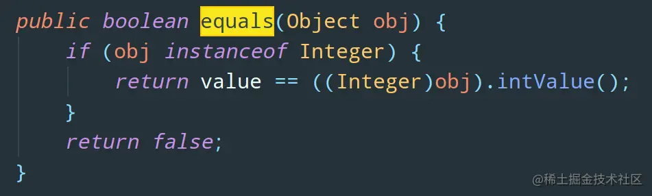 很显然,由于 InterCache 缓存机制的存在,可能会让我们在编程的时候出现困惑,因此最好使用 .equals 方法来比较 Integer 值是否相等。Integer 重写了 .equals 方法: