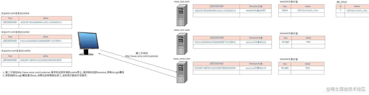 - 3.已登录状态下再次访问同站点,携带本地cookie的sessionId,若查到对应session,即已登录