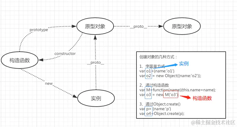 - 每个函数function都有一个prototype,即原型。每个对象都有一个proto,可成为隐式原型。每个对象都有一个proto属性,指向创建该对象的函数的prototype函数在定义的时候(不是调用的时候),就已经确定了函数体内部自由变量的作用域