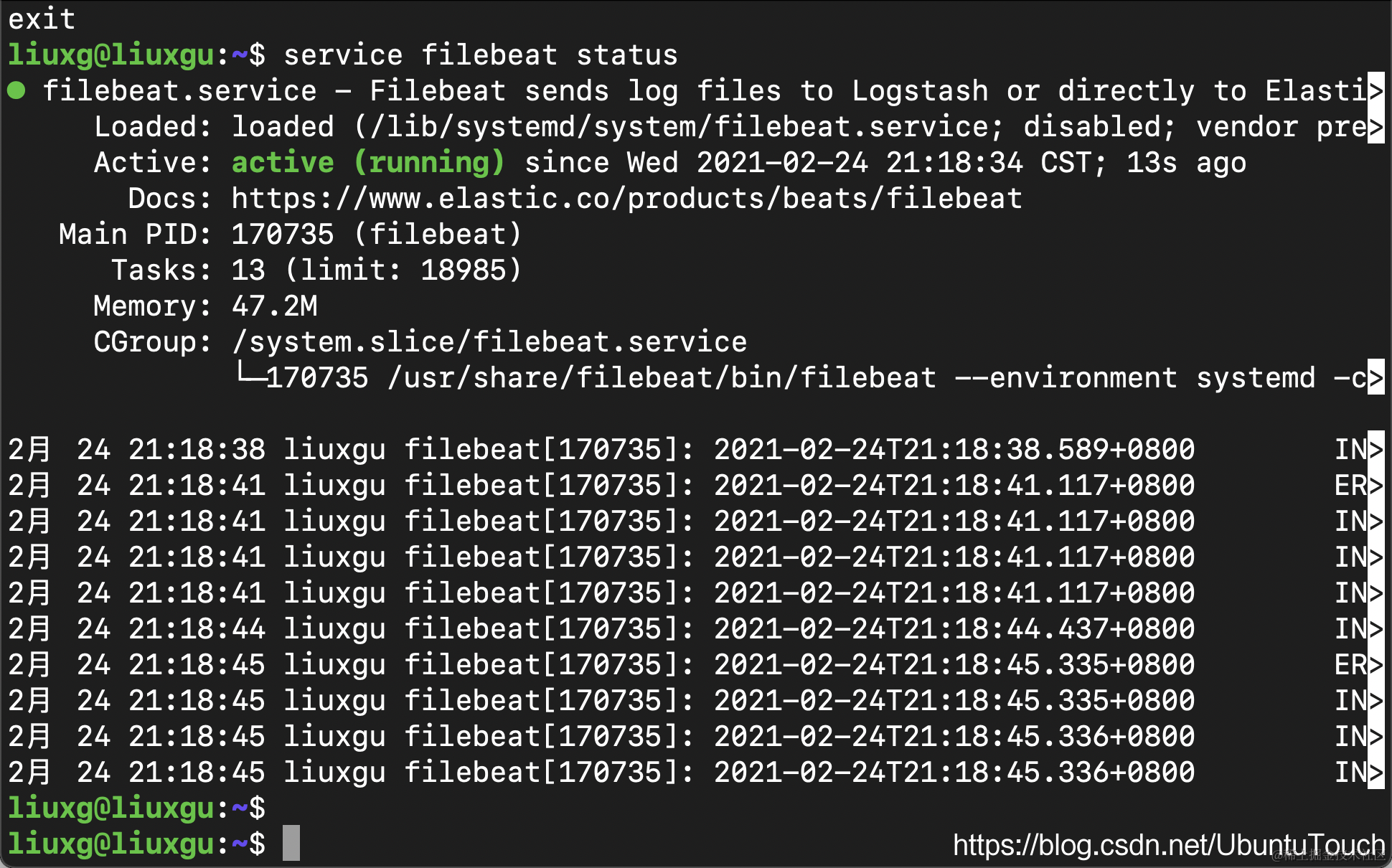 我们需要重新启动 Filebeat:
