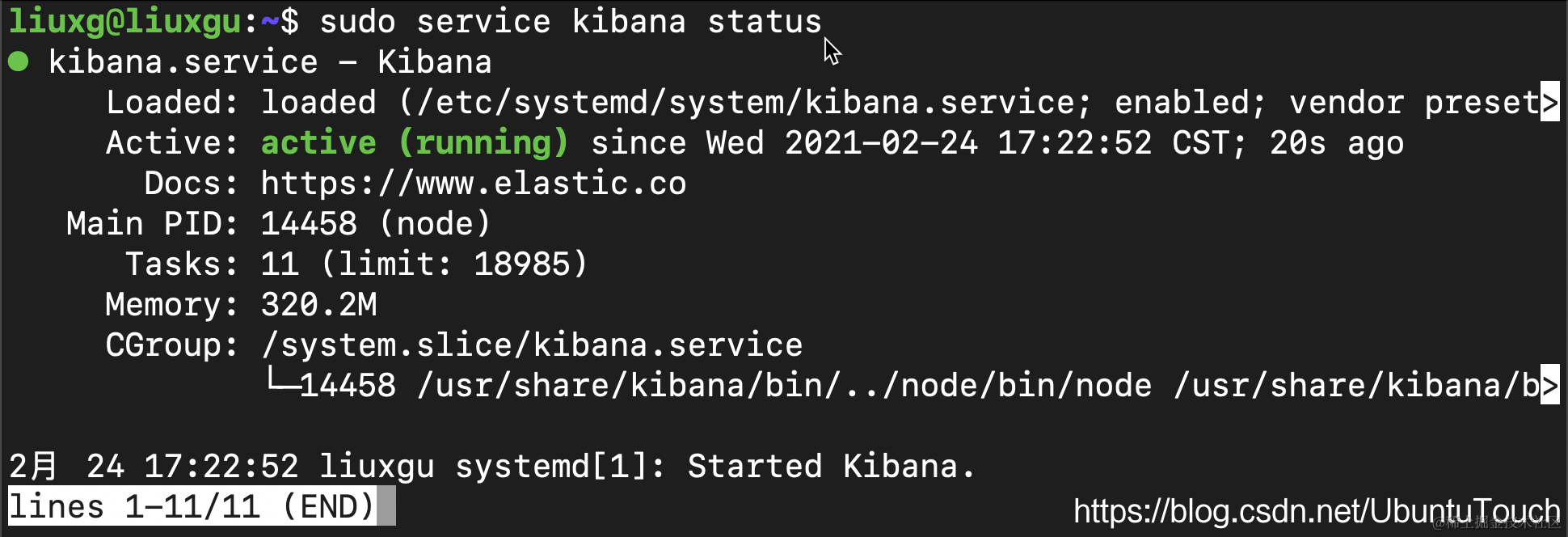 sudo service kibana status