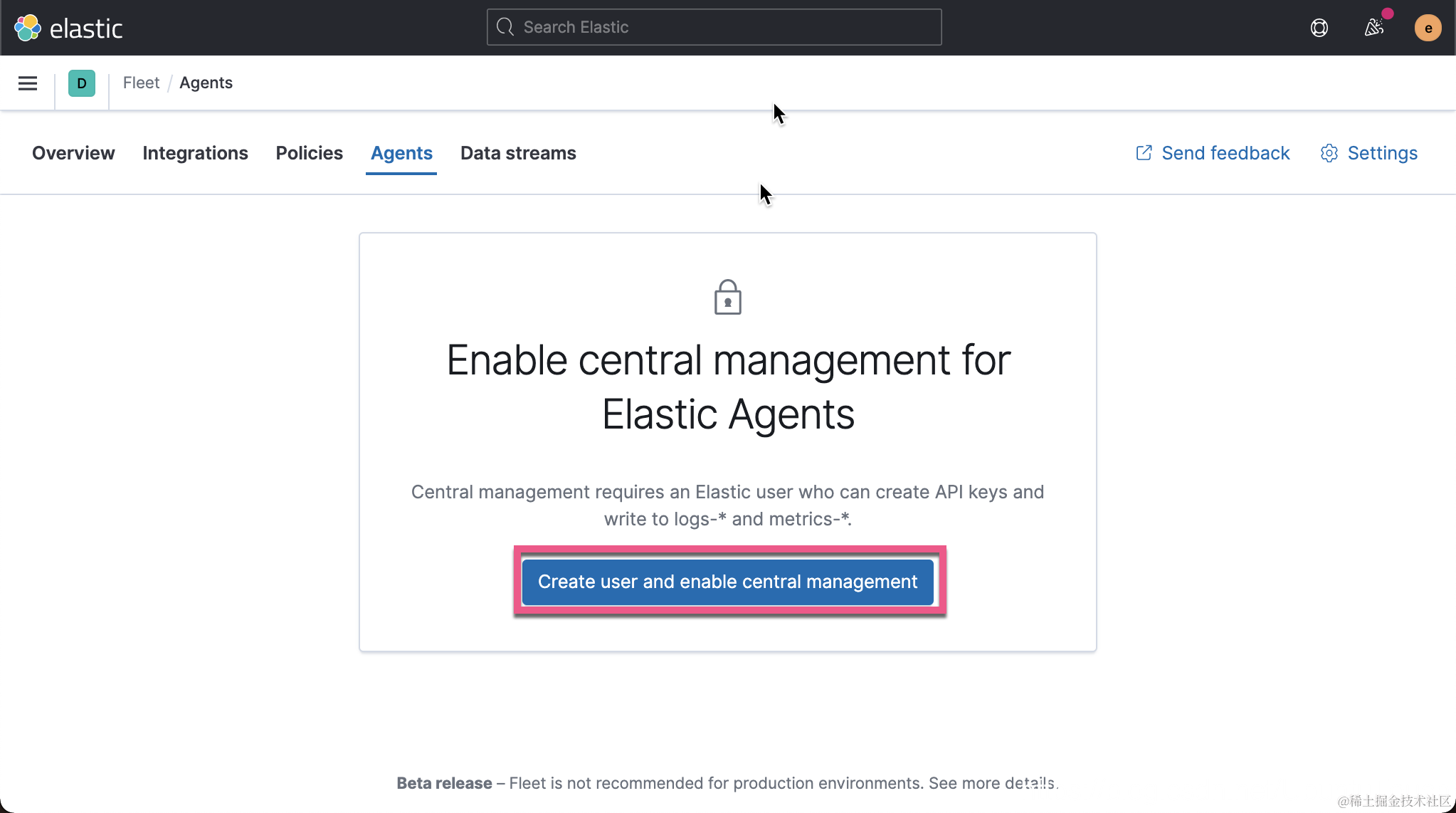 现在,我们准备安装 Elastic endpoint。首先,通过单击侧面菜单上管理标签下的链接,导航到 “Fleet” 仪表板。