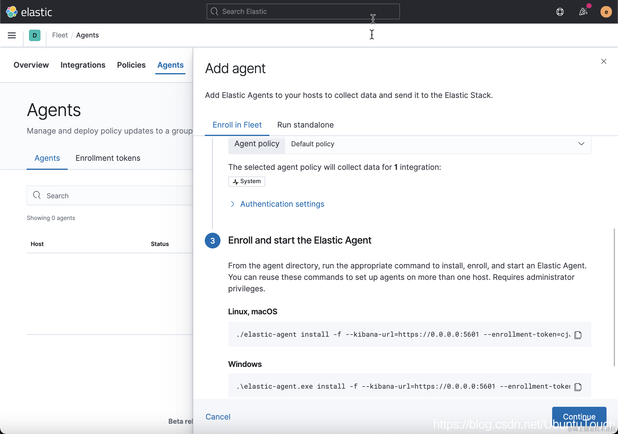 现在,我们准备安 Elastic agent。 从 Fleet Dashboard 复制安装命令,并在该代理所在的 Windows 主机上使用 PowerShell 运行它。由于 Elastic Stack 是运行于另外一个机器上的,我们需要对它做一些配置。我们可以参考文章 “Elastic:Elastic Security 入门”。这里就不再详述了。