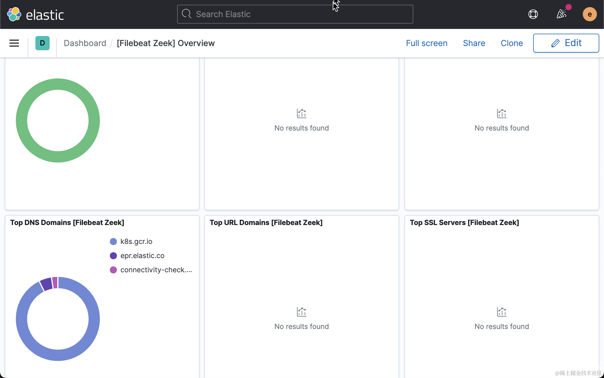 如果你转到 SIEM 应用程序中的网络仪表板,则应该看到使用 Zeek!数据填充的不同仪表板! 这里的仪表板很好地概述了从网络中收集的一些数据。