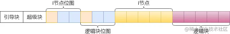 传统的文件系统在磁盘上的布局如下: 由上图可知,文件系统的开头通常是由一个磁盘扇区所组成的引导块,该部分的主要目的是用于对操作系统的引导。一般只在启动操作系统时使用。