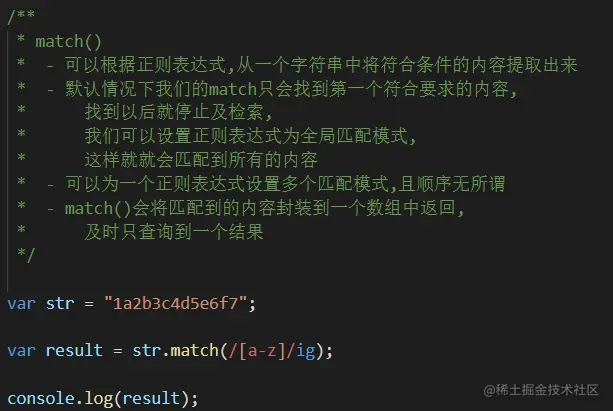 - match()会将匹配到的内容封装到一个数组中返回,及时只查询到一个结果