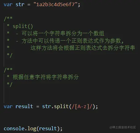 方法中可以传递一个正则表达式作为参数,这样方法将会根据正则表达式去拆分字符串