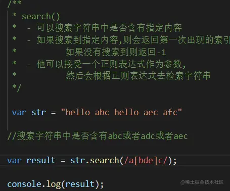 - 他可以接受一个正则表达式作为参数,然后会根据正则表达式去检索字符串