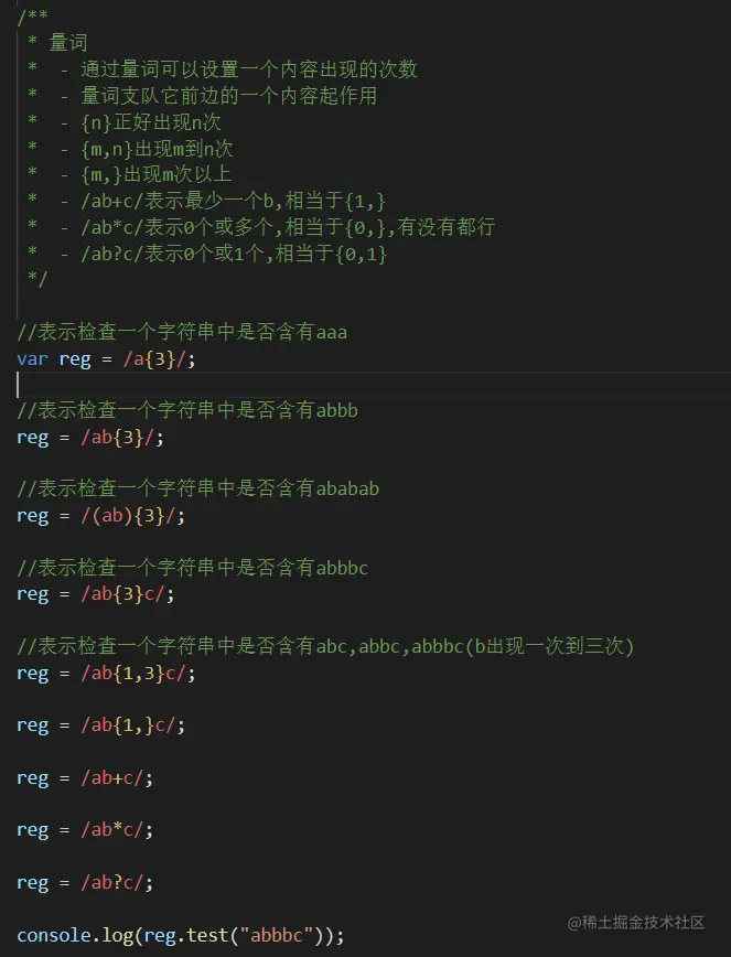 - 通过量词可以设置一个内容出现的次数