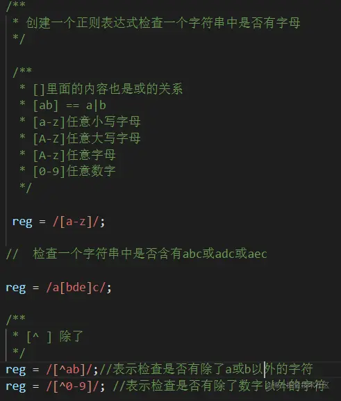 - /^a$/ 表示以同一个a开头并且结尾,也就是字符串只有a一个字符时返回true